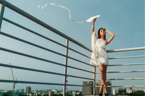 Sài Gòn của những tòa nhà thương mại dập dìu người qua lại. Sài Gòn – biểu tượng của sự thịnh trị, phát triển và tân tiến. Tất cả được sử dụng làm phông nền để tôn vinh vẻ đẹp hình thể của cô gái đang yêu, vẻ đẹp của bộ cánh mang đậm dấu ấn của Adrian Anh Tuấn.