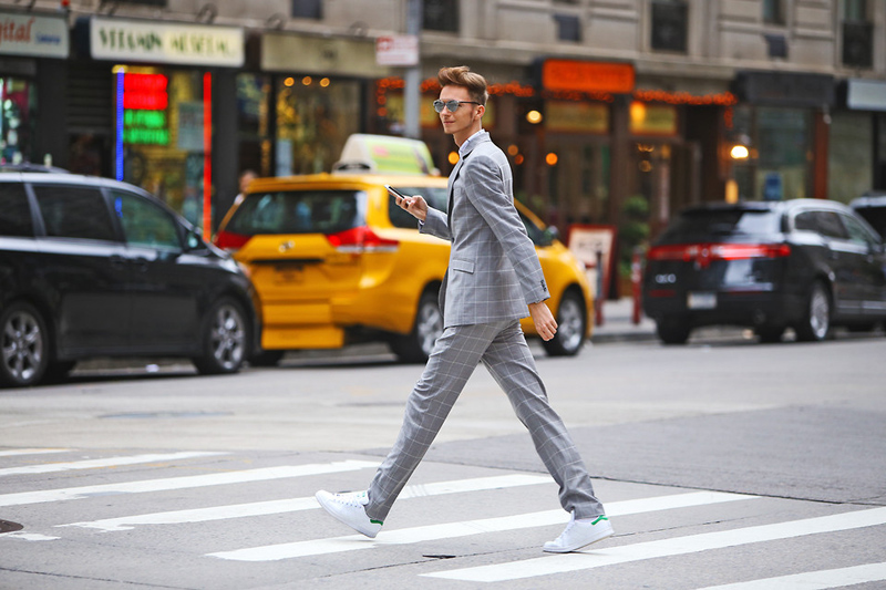 Sneakers trắng nhẩn nha biến thành người đồng hành cho cá tính street style, chính sự tiếp xúc của những giá trị năng động mang đến nét chấm phá nổi trội cho bộ suit. Ngoài sneakers trắng, bạn sẽ có những chọn lựa khác với những đôi giày tây màu sẫm như đen, đỏ burgundy hay nâu, xám.